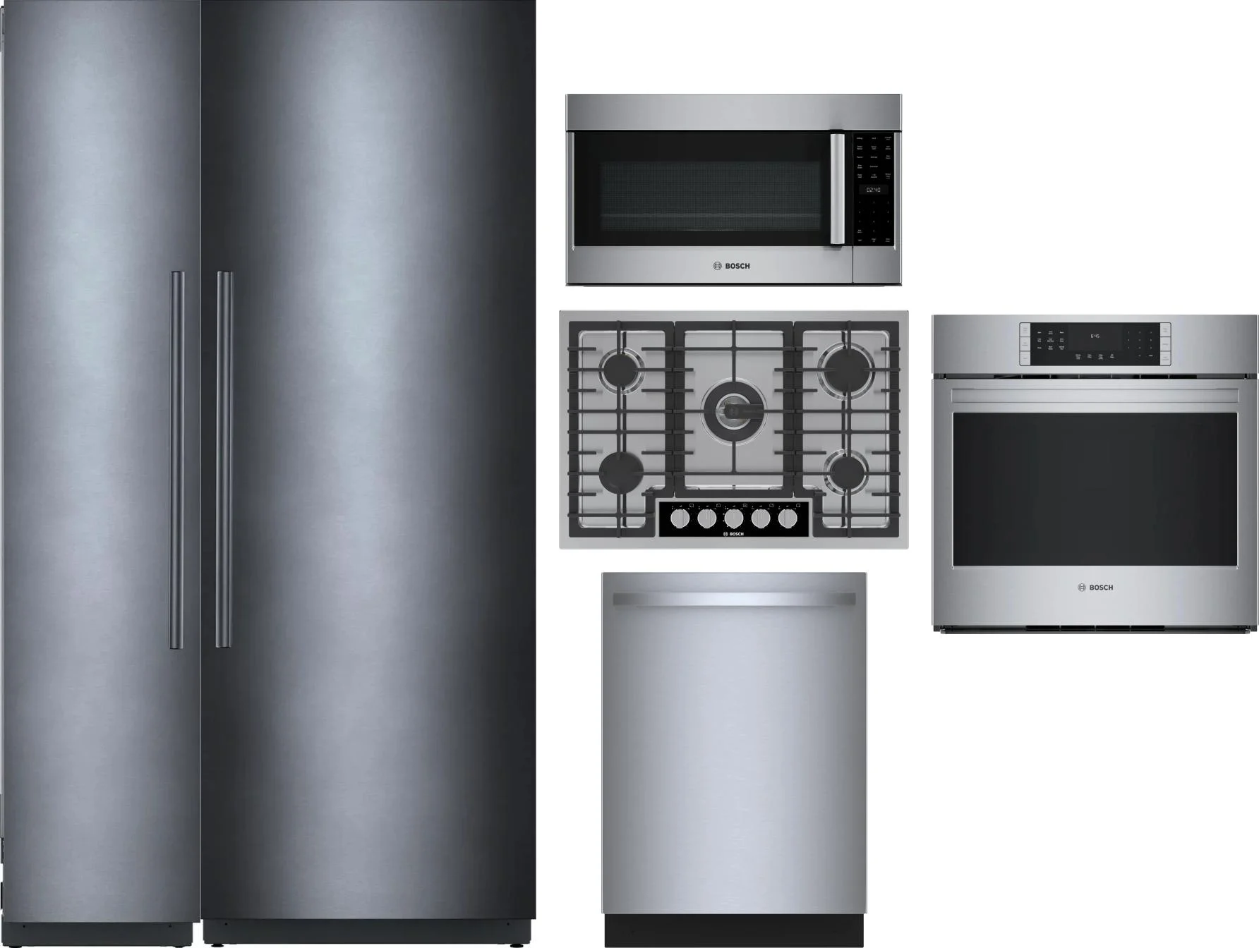 Bosch 6 Piece Package Includes Refrigerator, Freezer, Cooktop, Wall Oven, Microwave And Dishwasher