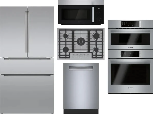 Bosch 5 Piece Package Includes Refrigerator, Cooktop, Wall Oven, Microwave And Dishwasher