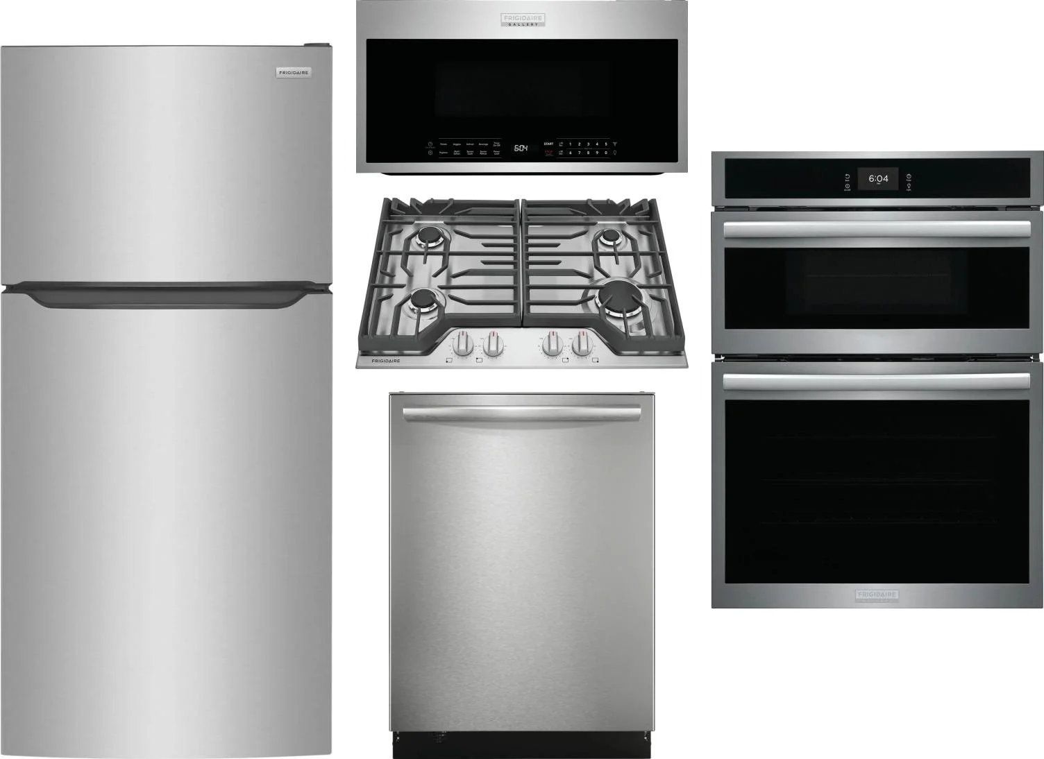 Frigidaire 5 Piece Package Includes Refrigerator, Cooktop, Wall Oven, Microwave And Dishwasher