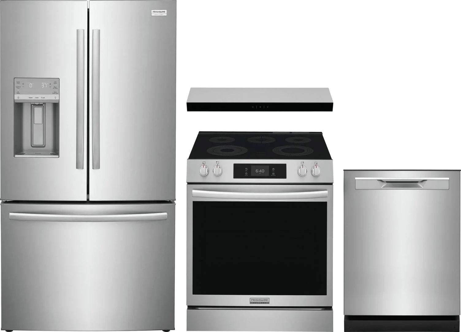 Frigidaire 4 Piece Package Includes Refrigerator, Range, Hood And Dishwasher