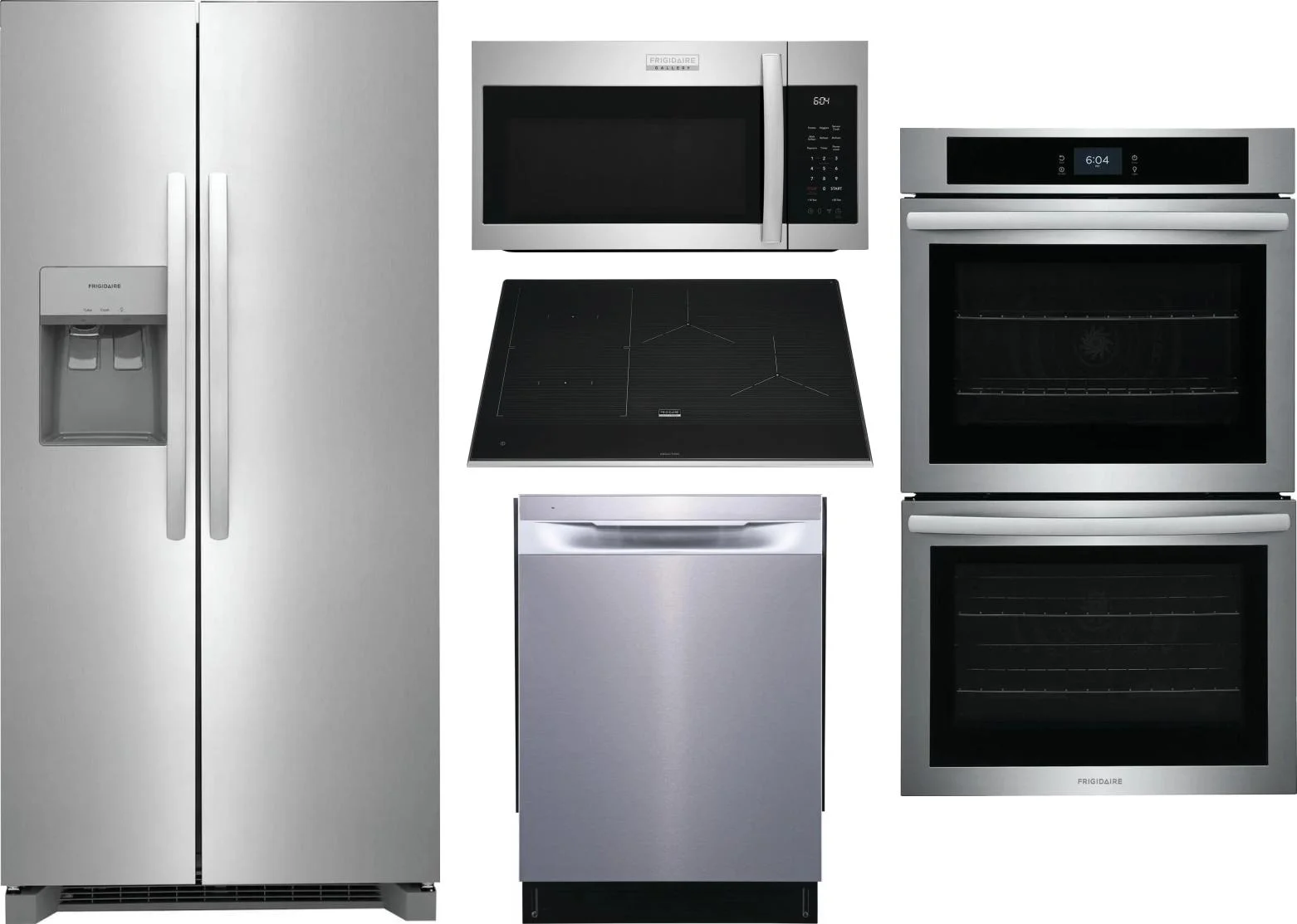 Frigidaire 5 Piece Package Includes Refrigerator, Cooktop, Wall Oven, Microwave And Dishwasher