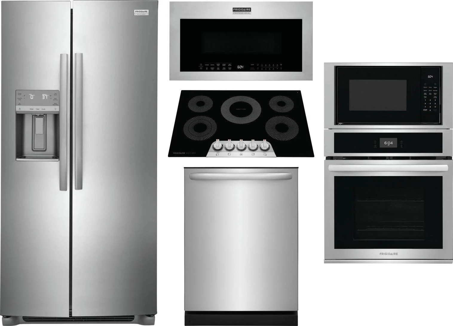 Frigidaire 5 Piece Package Includes Refrigerator, Cooktop, Wall Oven, Microwave And Dishwasher