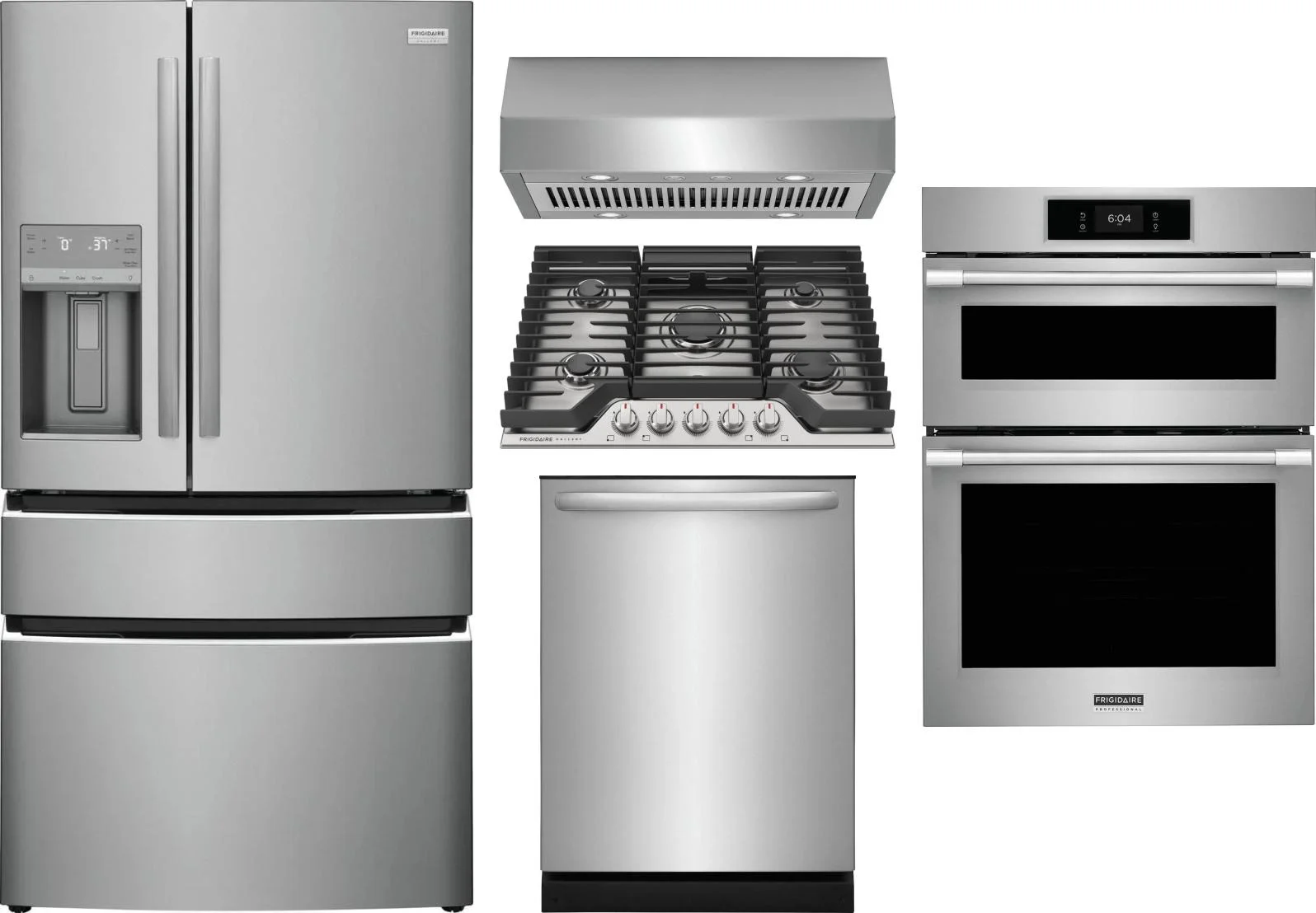 Frigidaire 5 Piece Package Includes Refrigerator, Cooktop, Wall Oven, Hood And Dishwasher