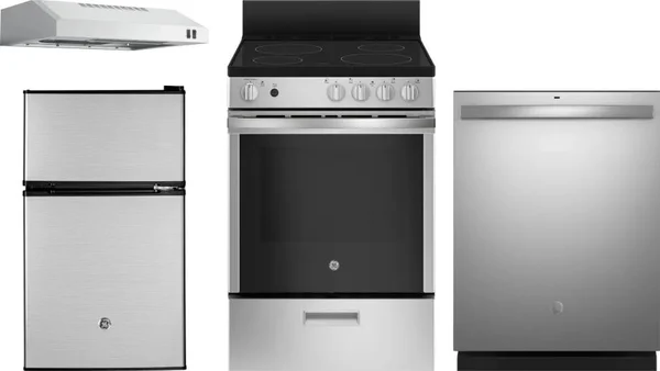 GE 4 Piece Package Includes Refrigerator, Range, Hood And Dishwasher