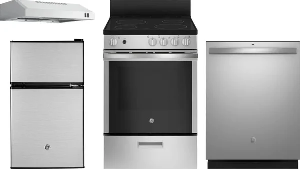 GE 4 Piece Package Includes Refrigerator, Range, Hood And Dishwasher
