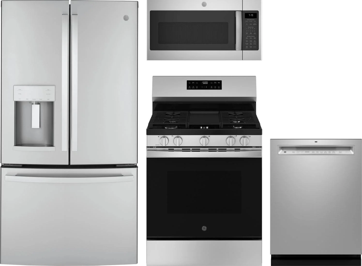 GE 4 Piece Package Includes Refrigerator, Range, Microwave And Dishwasher in Stainless Steel