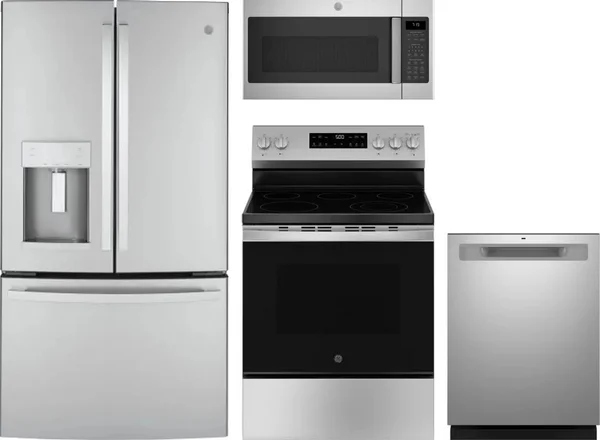 GE 4 Piece Package Includes Refrigerator, Range, Microwave And Dishwasher