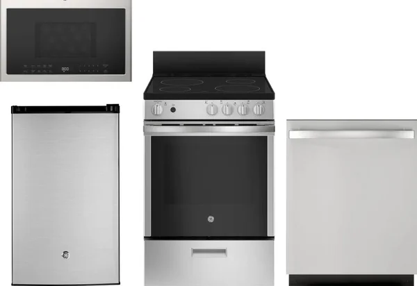 GE 4 Piece Package Includes Refrigerator, Range, Microwave And Dishwasher
