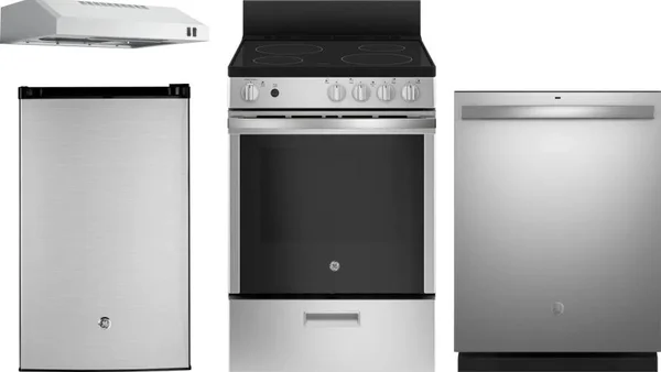 GE 4 Piece Package Includes Refrigerator, Range, Hood And Dishwasher