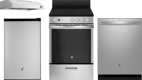 GE 4 Piece Package Includes Refrigerator, Range, Hood And Dishwasher
