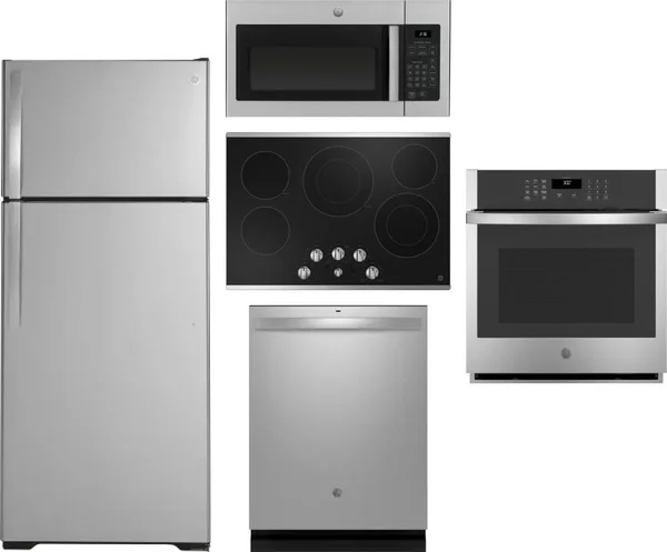 GE 5 Piece Package Includes Refrigerator, Cooktop, Wall Oven, Microwave And Dishwasher
