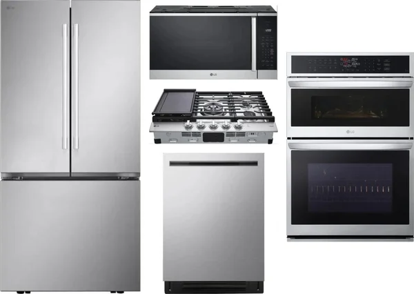 LG 5 Piece Package Includes Refrigerator, Cooktop, Wall Oven, Microwave And Dishwasher