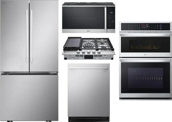 LG 5 Piece Package Includes Refrigerator, Cooktop, Wall Oven, Microwave And Dishwasher