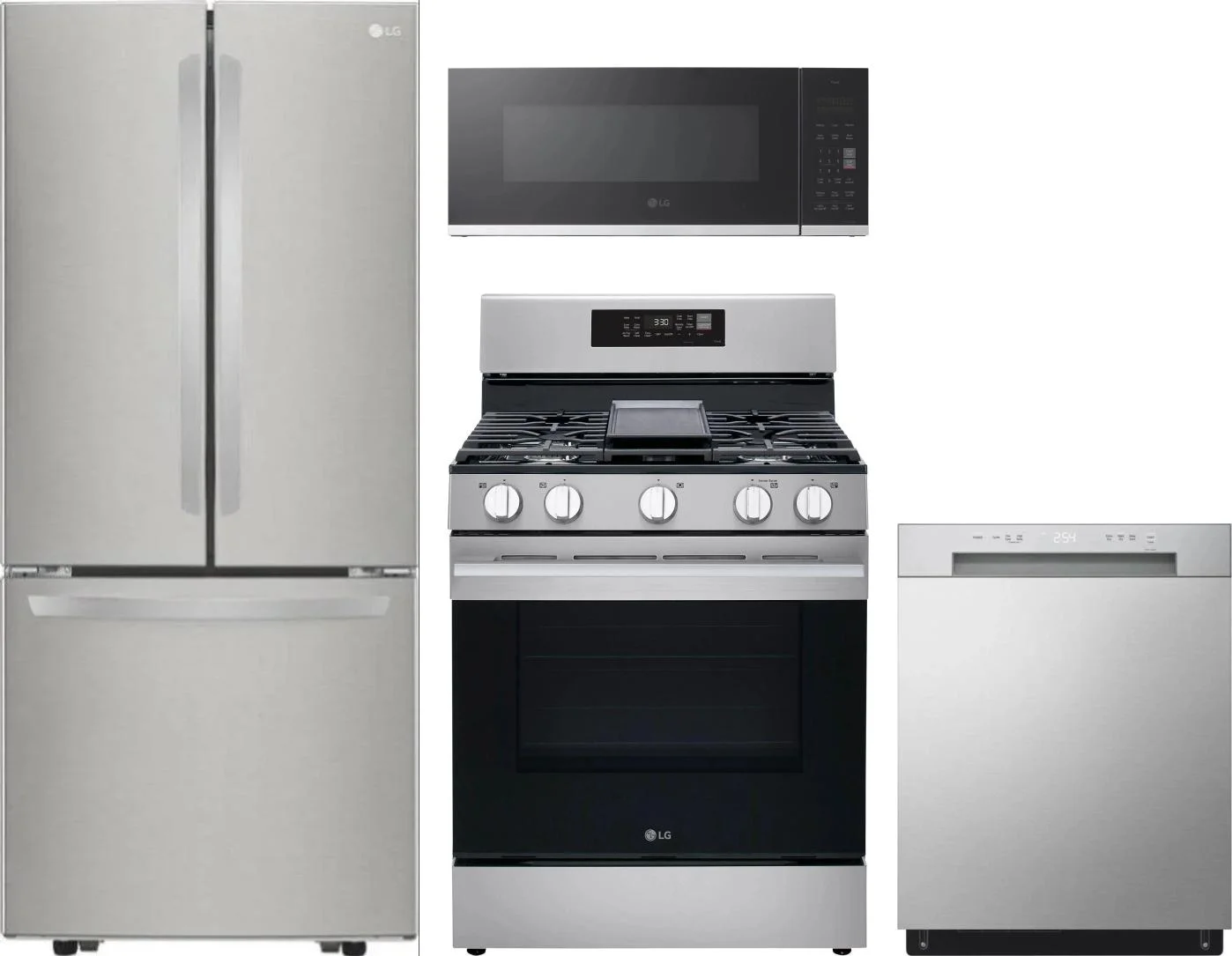 LG 4 Piece Package Includes Refrigerator, Range, Microwave And Dishwasher in Stainless Steel