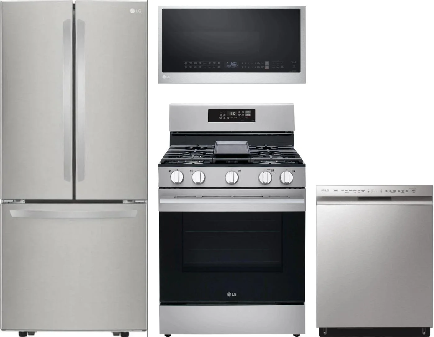 LG 4 Piece Package Includes Refrigerator, Range, Microwave And Dishwasher in Stainless Steel