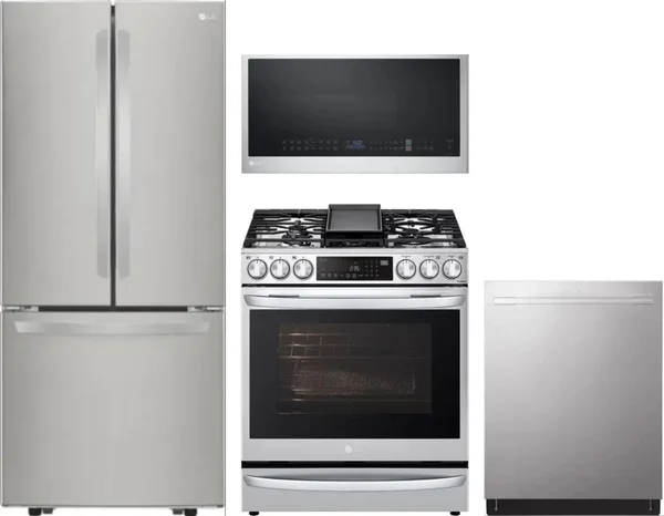 LG 4 Piece Package Includes Refrigerator, Range, Microwave And Dishwasher