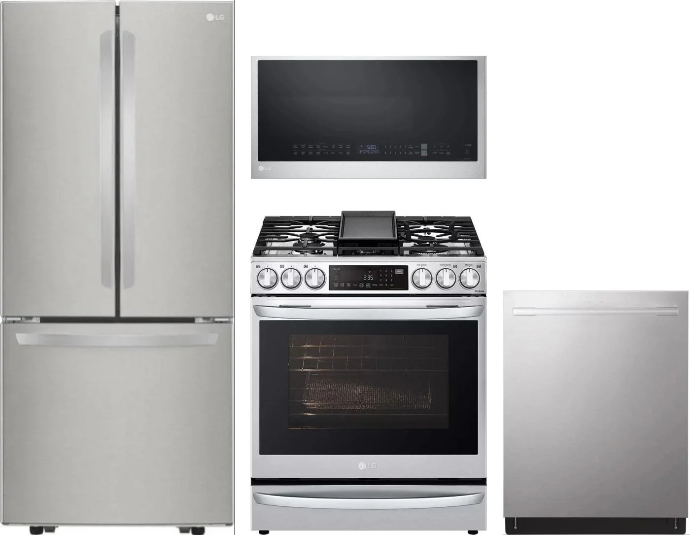LG 4 Piece Package Includes Refrigerator, Range, Microwave And Dishwasher in Stainless Steel