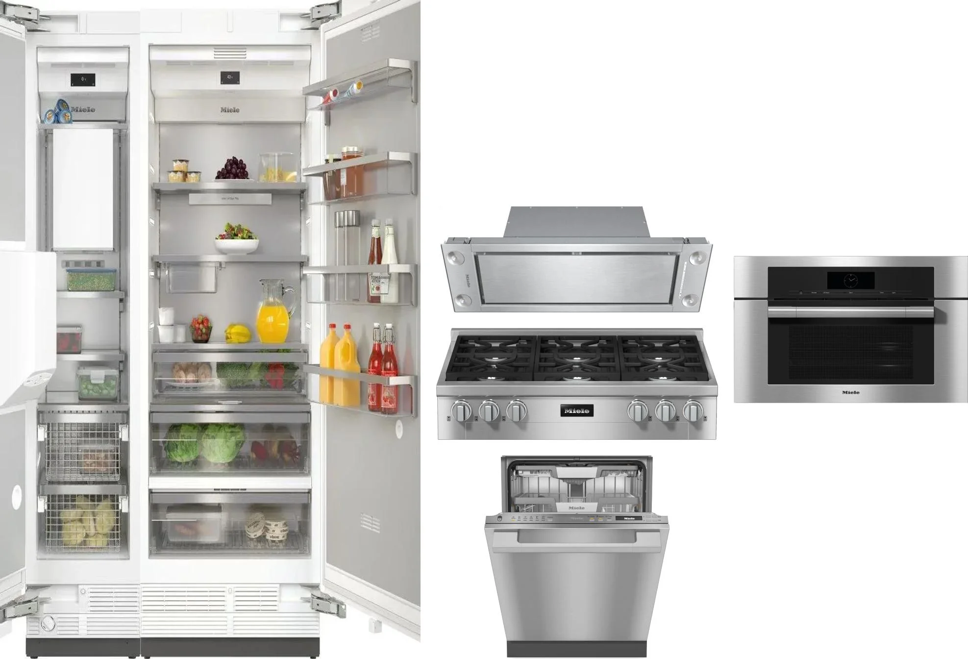 Miele 6 Piece Package Includes Refrigerator, Freezer, Cooktop, Wall Oven, Hood And Dishwasher