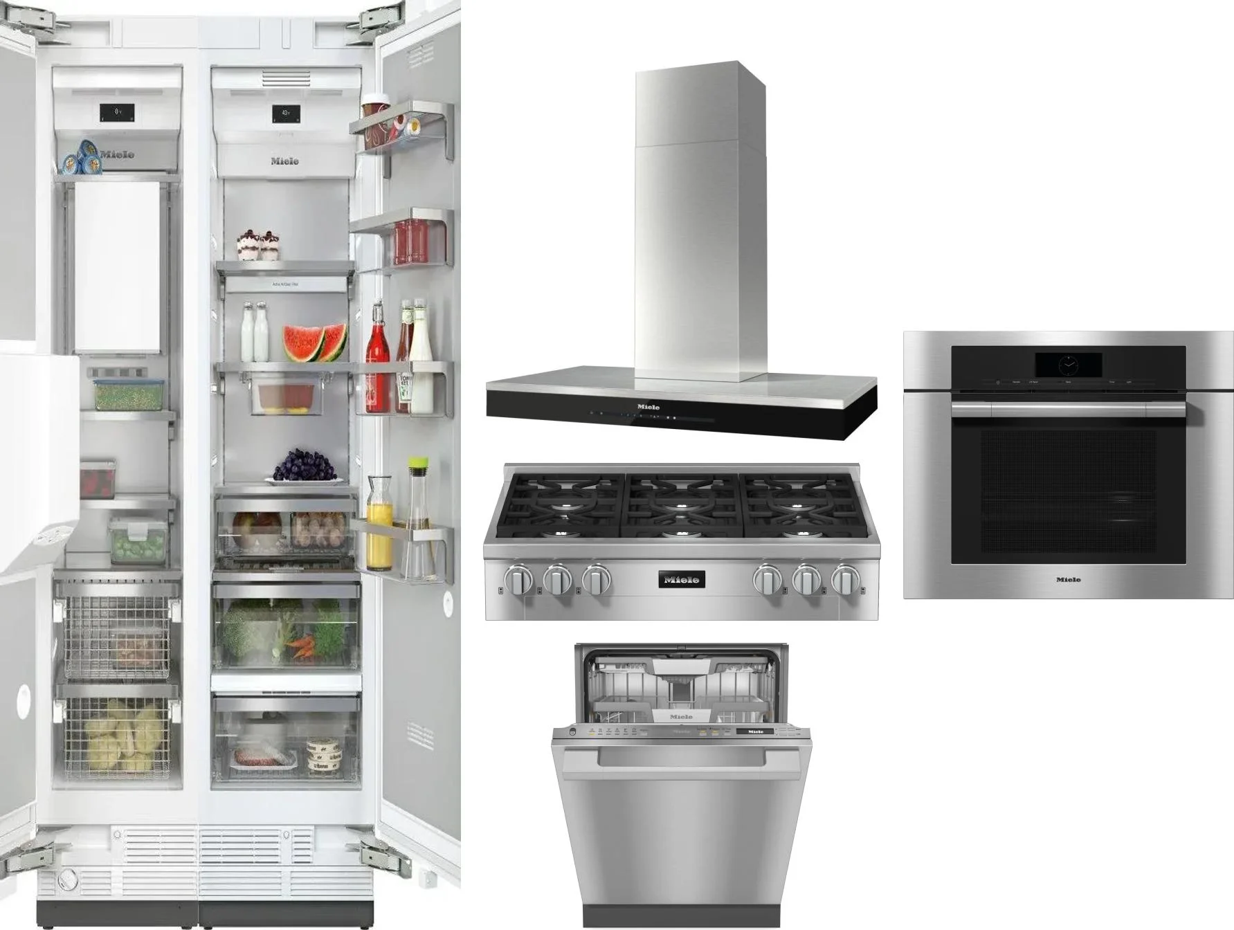Miele 6 Piece Package Includes Refrigerator, Freezer, Cooktop, Wall Oven, Hood And Dishwasher