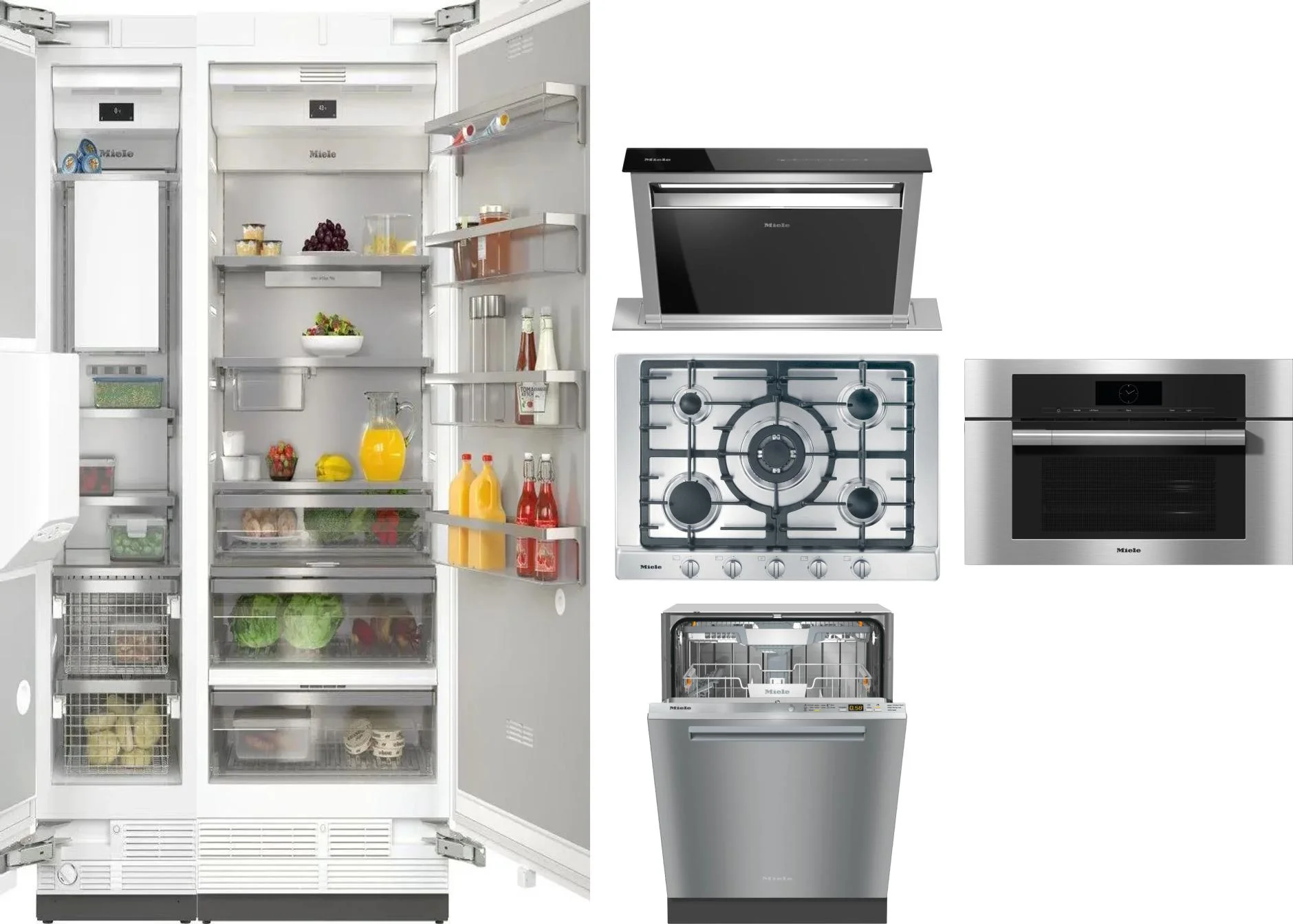 Miele 6 Piece Package Includes Refrigerator, Freezer, Cooktop, Wall Oven, Hood And Dishwasher