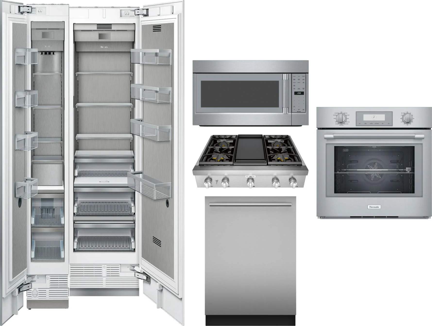 Thermador 6 Piece Package Includes Refrigerator, Freezer, Cooktop, Wall Oven, Microwave And Dishwasher