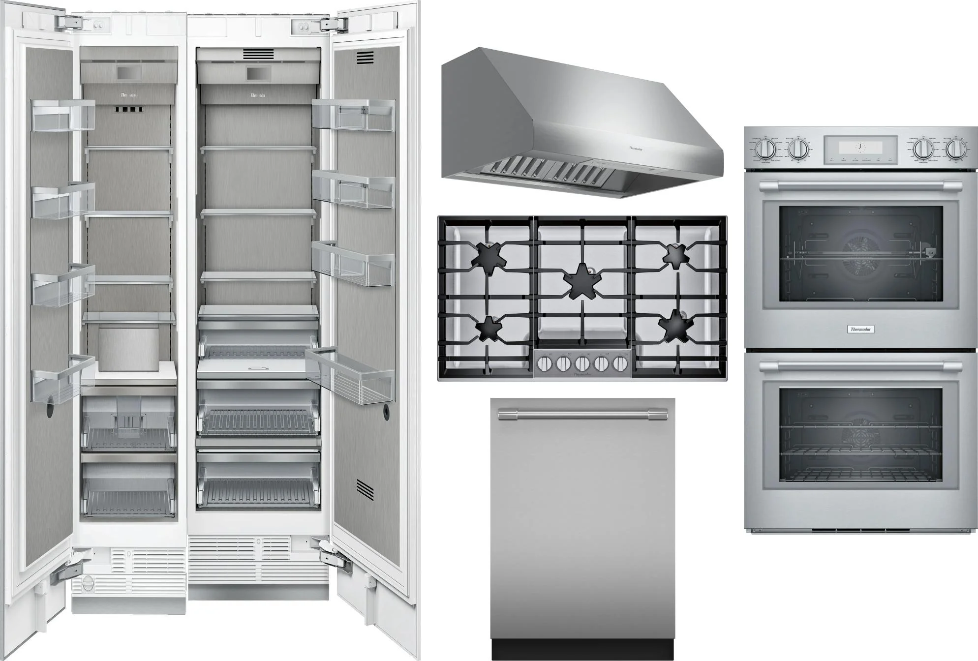 Thermador 6 Piece Package Includes Refrigerator, Freezer, Cooktop, Wall Oven, Hood And Dishwasher