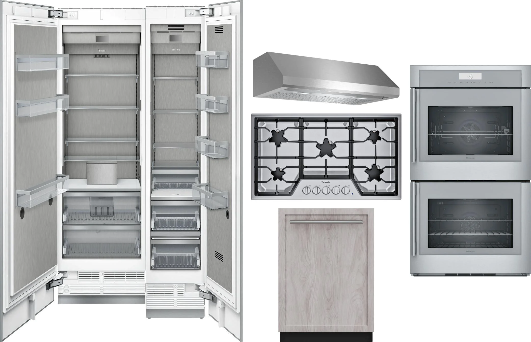 Thermador 6 Piece Package Includes Refrigerator, Freezer, Cooktop, Wall Oven, Hood And Dishwasher