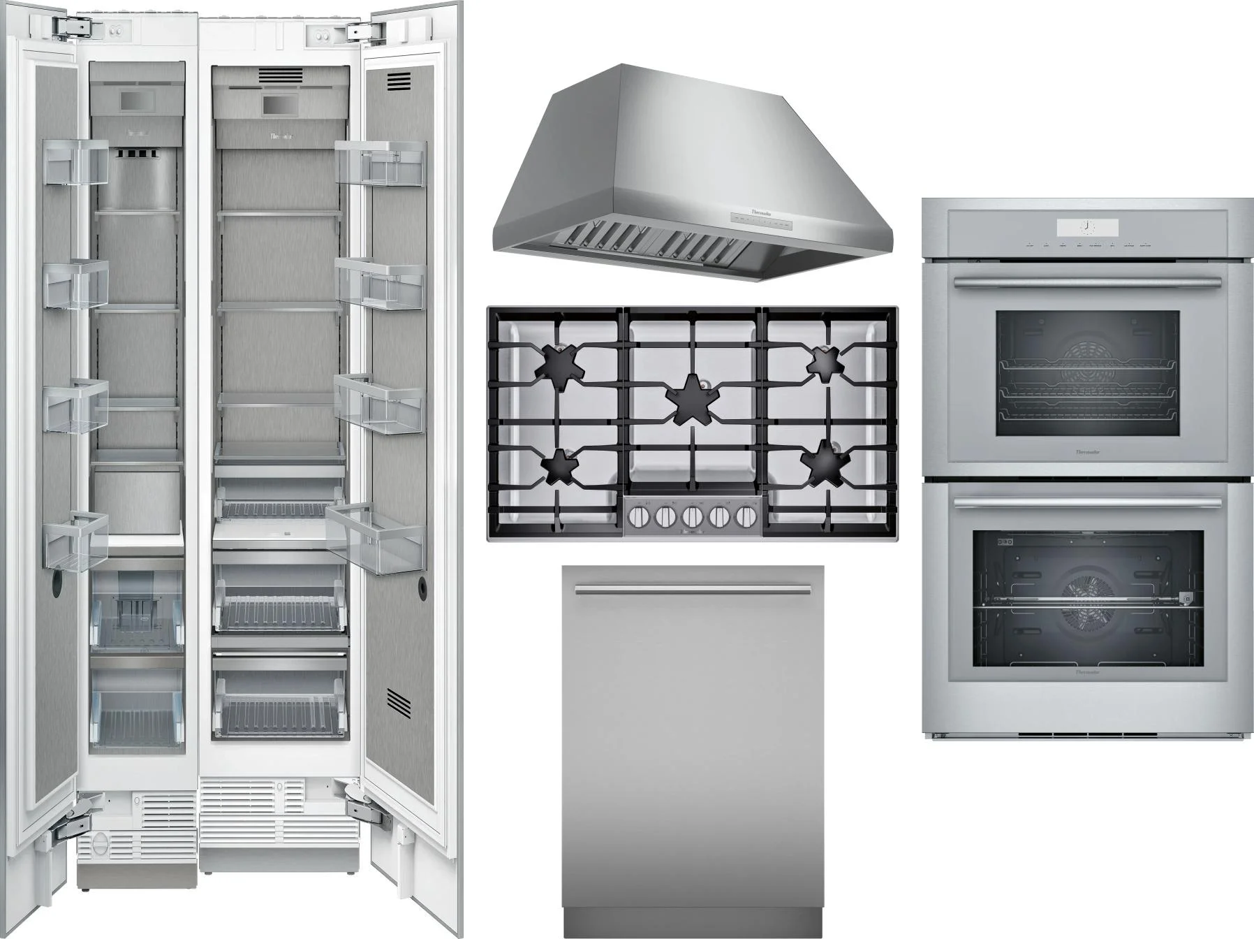 Thermador 6 Piece Package Includes Refrigerator, Freezer, Cooktop, Wall Oven, Hood And Dishwasher
