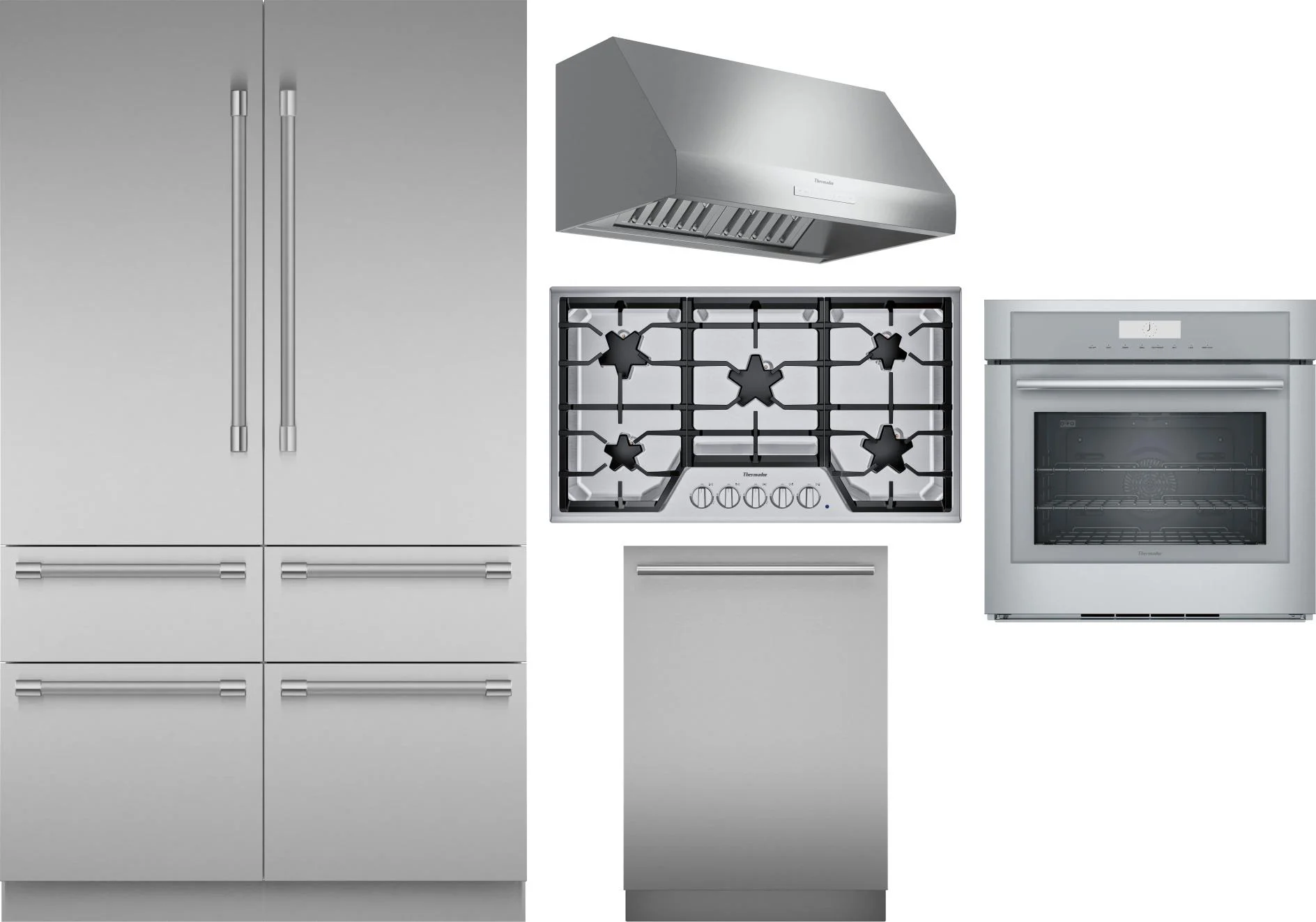 Thermador 5 Piece Package Includes Refrigerator, Cooktop, Wall Oven, Hood And Dishwasher