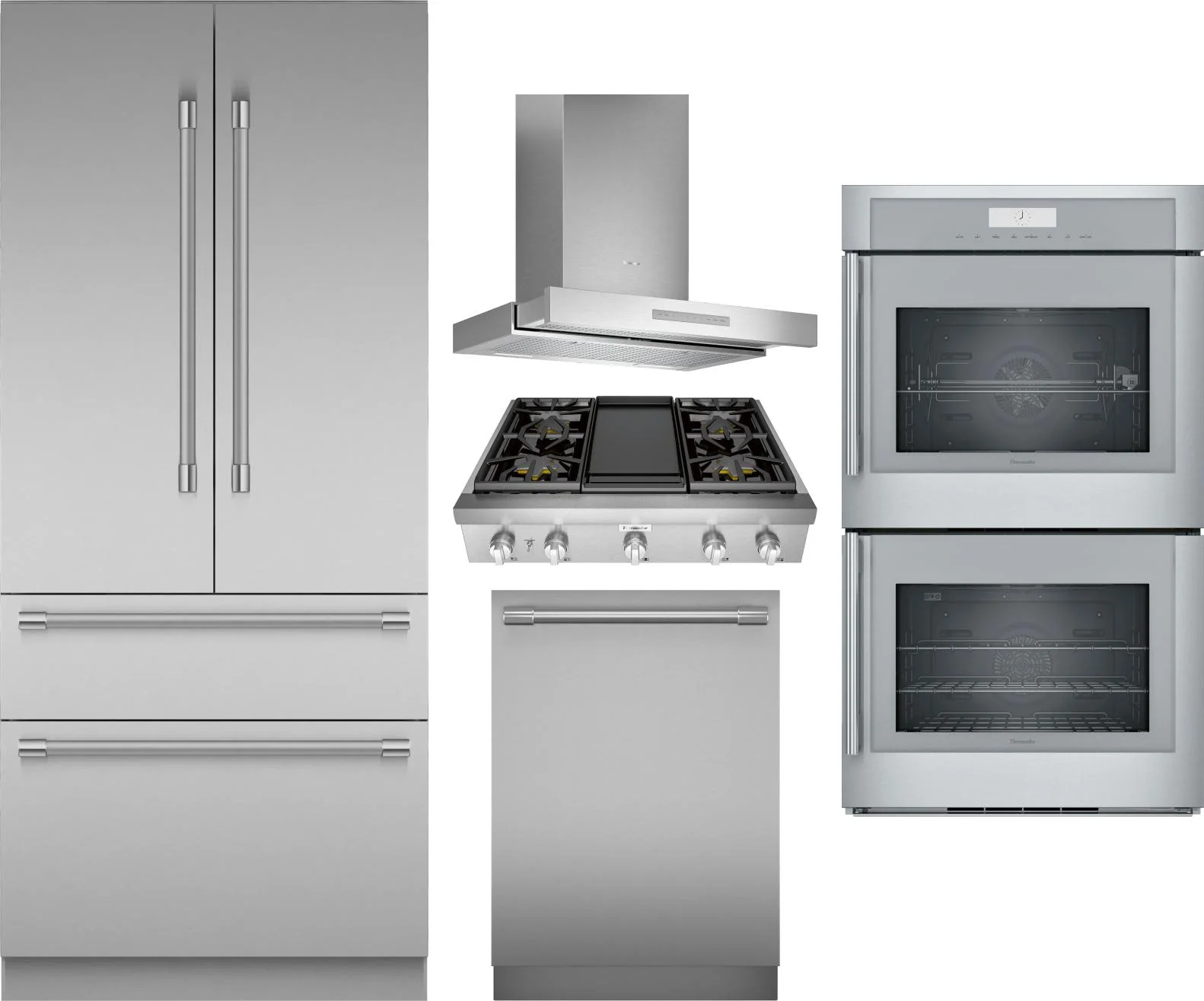 Thermador 5 Piece Package Includes Refrigerator, Cooktop, Wall Oven, Hood And Dishwasher