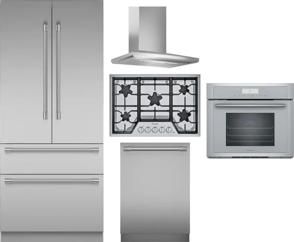 Thermador 5 Piece Package Includes Refrigerator, Cooktop, Wall Oven, Hood And Dishwasher