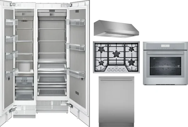 Thermador 6 Piece Package Includes Refrigerator, Freezer, Cooktop, Wall Oven, Hood And Dishwasher
