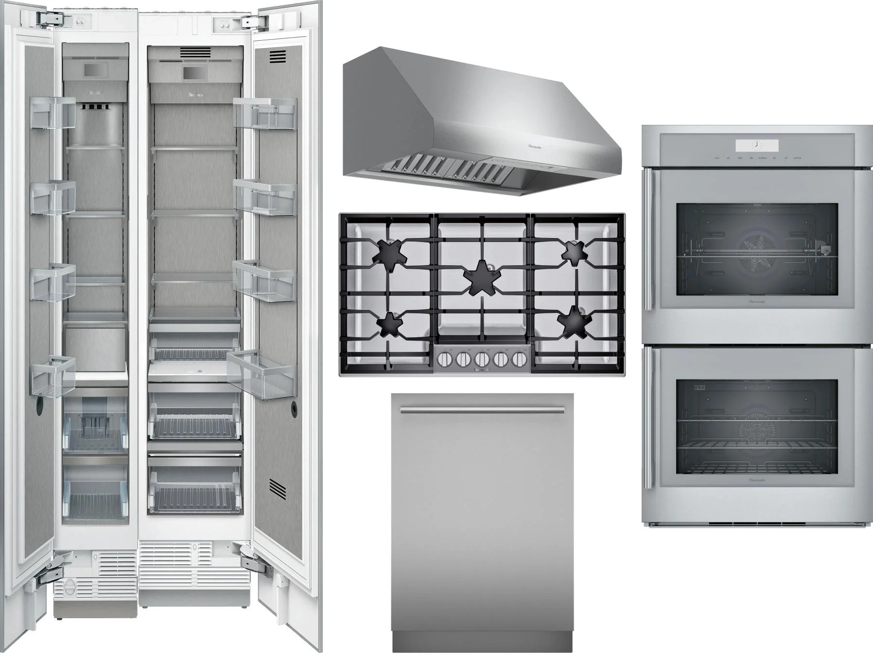 Thermador 6 Piece Package Includes Refrigerator, Freezer, Cooktop, Wall Oven, Hood And Dishwasher