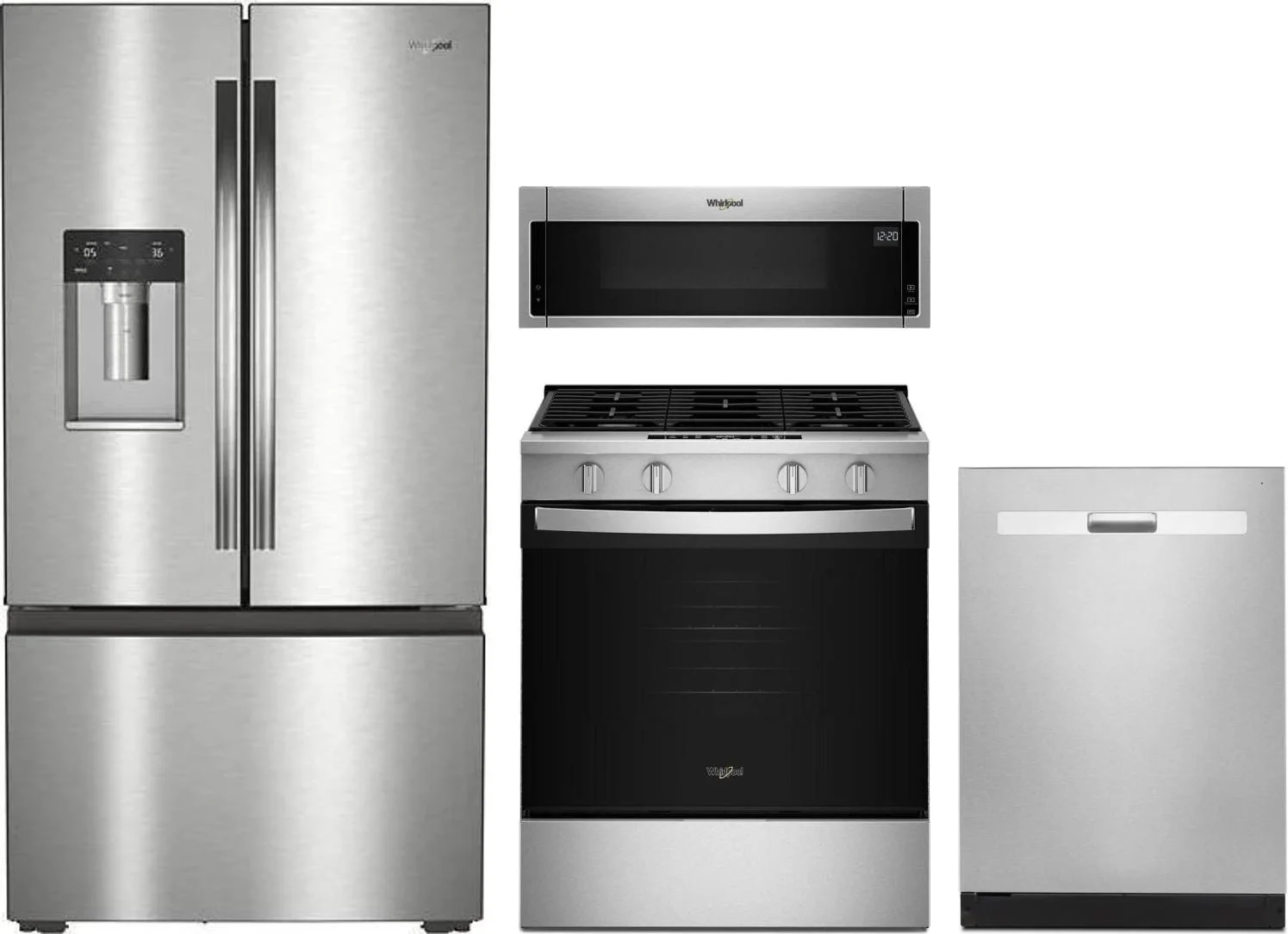 Whirlpool 4 Piece Package Includes Refrigerator, Range, Microwave And Dishwasher in Stainless Steel