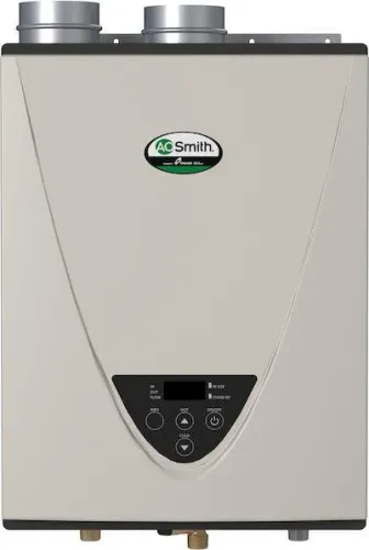 The 240H Series offers high efficiency Ultra-Low NOx condensing technology allowing for the use of 3 PVC venting and has 0 clearance to combustibles. Features copper primary and 316L stainless steel heat ex-changers to provide high efficiency operation and excellent corrosion resistance. Outdoor models include a remote controller as a standard feature. Indoor models are certified up to 10,100 ft. altitude. Provides a variety of installation options: indoor, outdoor and direct vent. Complies with Ultra-Low NOx regulations and meets the energy efficiency requirements of ASHRAE 90.1b-1992. The ATI-240H-N tankless water heater uses up to 160,000 BTU/hr of natural gas to deliver an endless supply of hot water for a 2 bath home in northern climates and up to a 3 bath home in southern climates (one shower head per bath). Utilizing condensing technology, this heater is extremely efficient with a Uniform Energy Factor of 0.94. With an industry leading 15-year limited warranty, the ATI-240H-N tankless water heater provides years of hot water through innovation and quality. A. O. Smith s ProLine(R) water heaters are residential products built to commercial-grade standards and are only available for purchase through professional wholesalers and contractors.