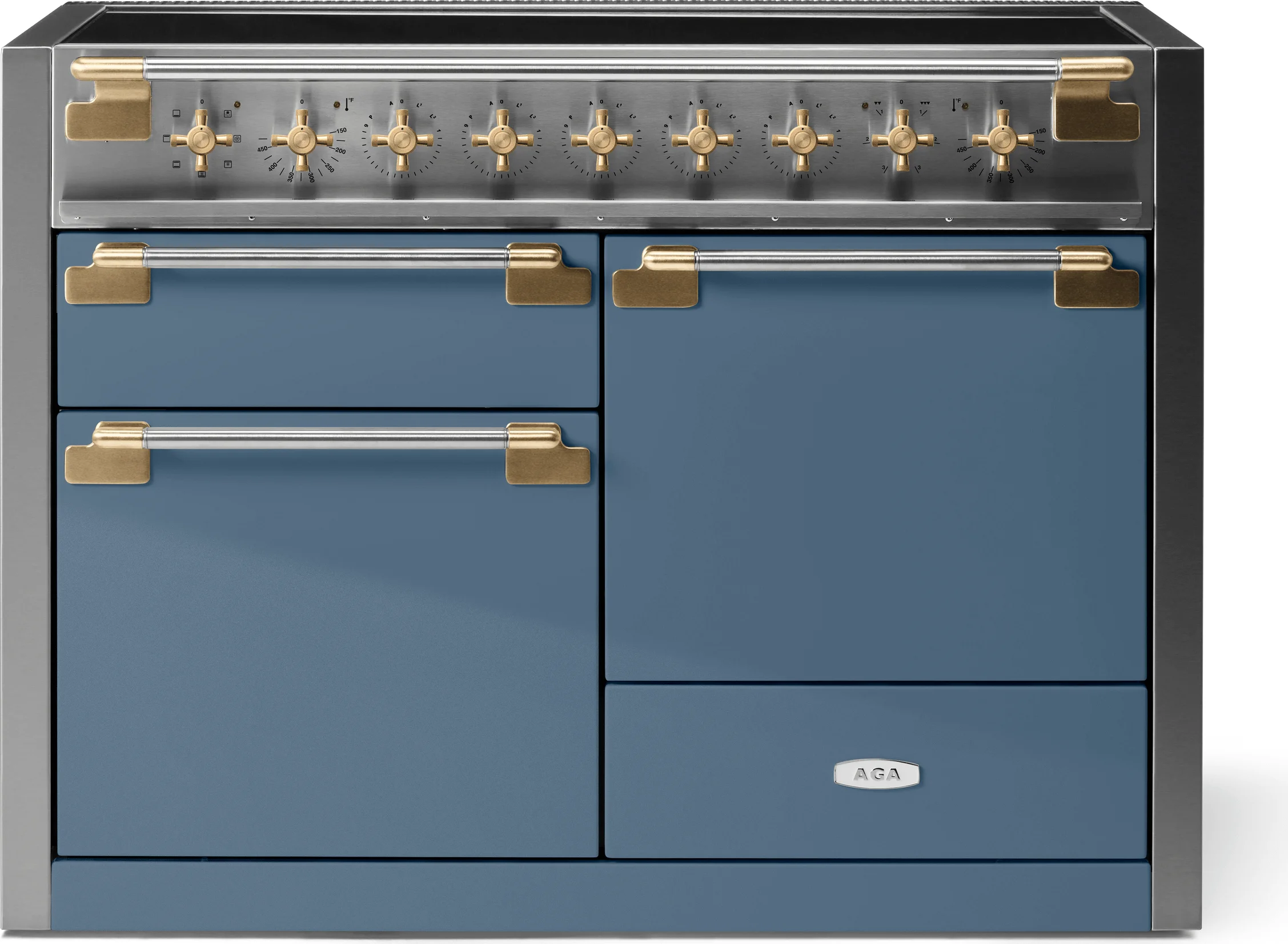 The Aga Elise is available in both 36 and 48inchs, as well as Duel Fuel or induction. With 14 colors to choos from and 2 trims, brushed nickel or Antique Brass, the re-imagining of the classic Elise design, AGA took its cues from the modern farmhouse movement itself. Rustic yet refined, the Elise blends old and new in masterful ways, both fresh and timeless, with just a hint of the exquisite.Complimented by stunning new cruciform knobs with knurling, shipped standard in Brushed Nickel, but also available as after-market options in four additional versatile hardware finishes (Polished Chrome, Polished Brass, Polished Copper, Brushed Brass and Black Anodized Aluminum), the re-imagined AGA Elise confidently steps into the spotlight along side its classic AGA siblings