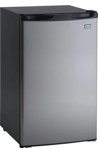 Keep your snacks and favorite beverages close by in the compact, 4.4 cubic foot refrigerator from Avanti. The perfect mini fridge for the office, dorm, man cave, she-shed, bar, bedroom, or anywhere you need a little extra refrigerator space. The 1 full-width and 2 half-width door storage bins can hold up to 6 standard size cans, and the lower bin storage can hold a gallon-sized bottle. Use the adjustable slide-out glass shelves to arrange salads, fruits, snacks, and other foods for easy access throughout the day. This compact fridge features manual defrost, so your food and beverages remain fresh and cold. Select the right settings for your items with the adjustable thermostat control with push-button to defrost mode.