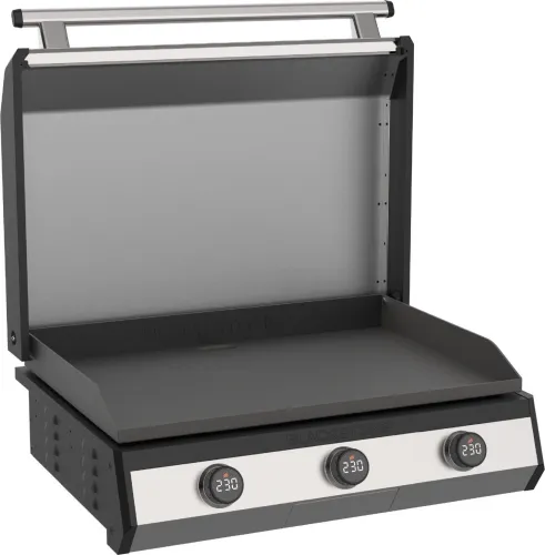 The 30 Drop-in Griddle is incredibly efficient with three independently controlled heat zones that include digital temperature readouts on each knob, actively reading the temperature of each zone. Featuring Omnivore Griddle Plate technology for better heat distribution and quicker preheat times, in addition to built-in wind guards and better heat control, so you ll be cooking breakfast, lunch, and dinner with ease.