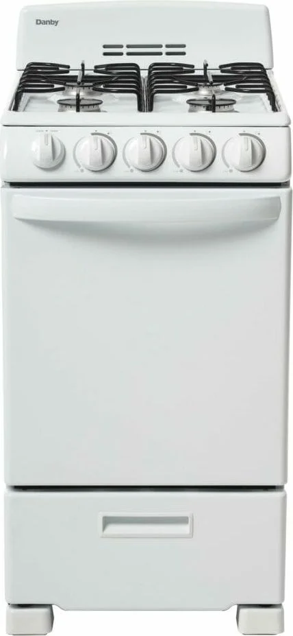 You dont need to be a world-class chef to enjoy cooking with this ultra-compact gas range by Danby. This attractive model may only be 20-inches wide, but it comes with everything you need for fine dining. This includes an oven and four burners. This trendy appliance provides 2.3 cubic feet of oven space making it ideal for small-space living such as apartments and cottages. It boasts an easy-to-clean pyrolytic blue oven interior for easy clean up. The oven dishes out a powerful 13,000 BTU of baking power. This dependable gas range comes with an angular control panel with push-and-turn front knobs for added safety and includes two oven racks with four adjustable positions and safety stops for optimal cooking. This range is ADA compliant and offers a 12-month warranty on parts and labor with convenient in-home service
