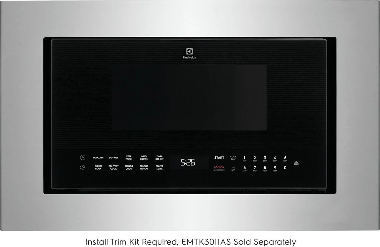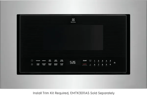 For a premium built-in look, purchase the 30" stainless steel trim kit accessory, EMTK3011AS. Trim kit required for built-in installation. Sold separately.
