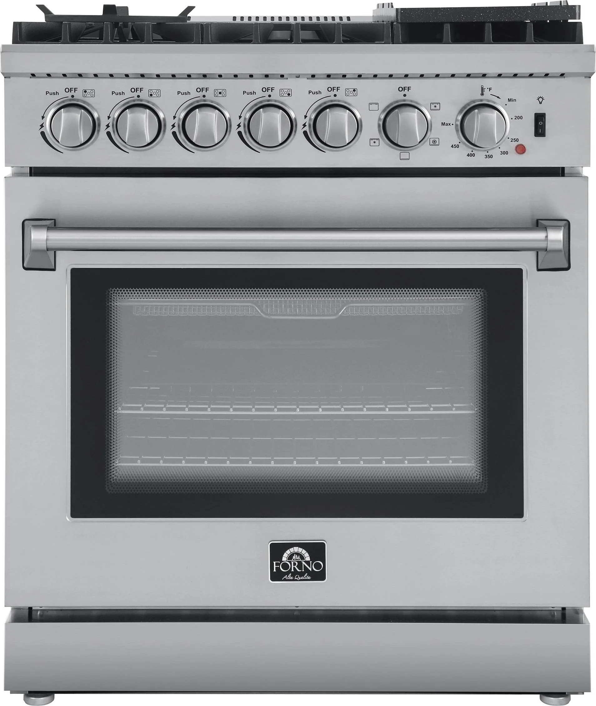 Forno Lazio 30-Inch Freestanding Dual Fuel Range, 4 Burners, True Convection Oven