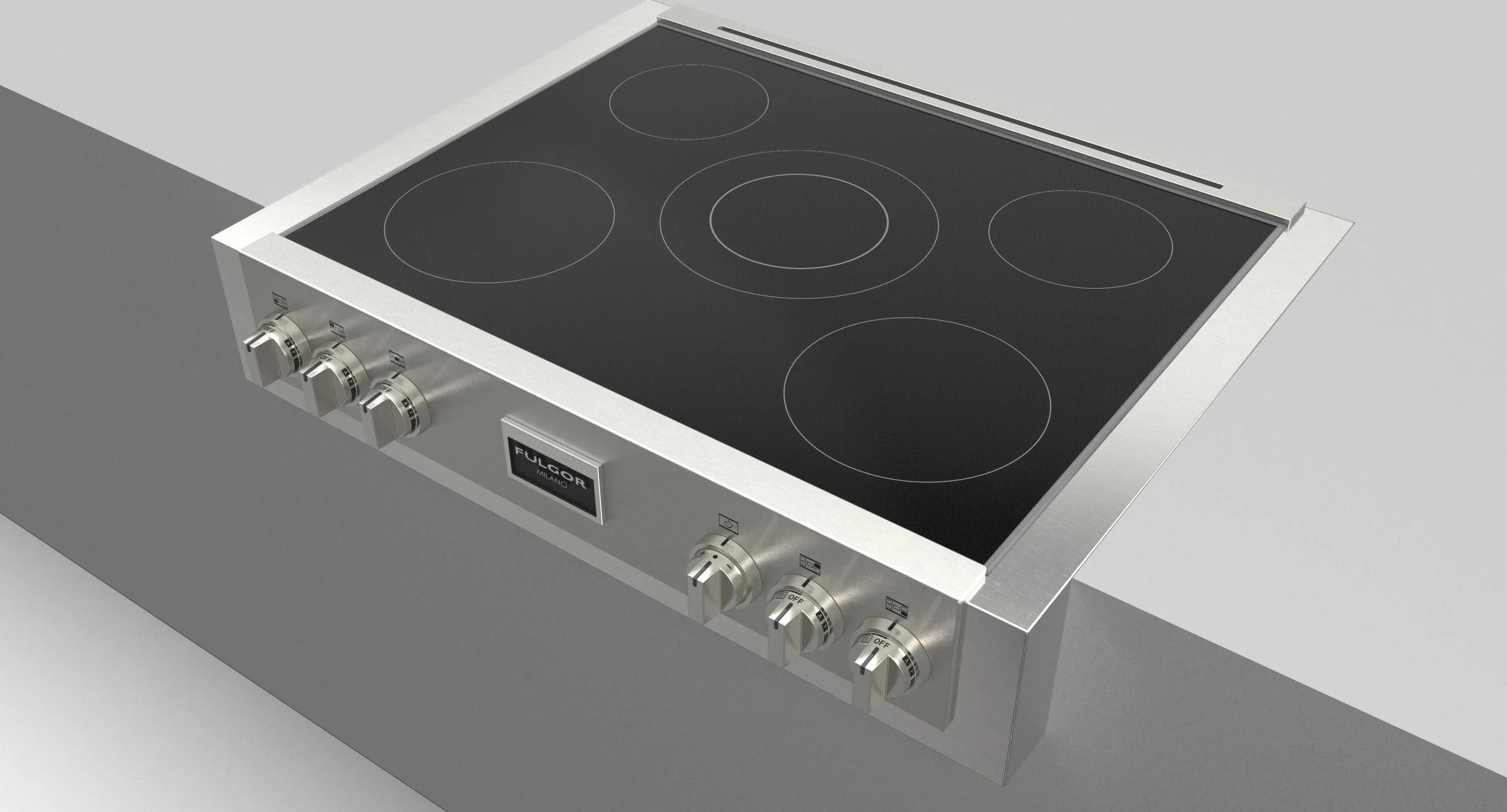 Style and performances are the most appropriate description for the Professional Range Top. The combination of solid materials and efficient technologies allows us to offer versatile and functional solutions. The sturdiness of the stainless steel structure, combined with the perfectly flat surface of the glass ceramic; the steel knobs with the precision of the adjustment of the individual cooking zones, offer infinite possibilities to cook recipes like a chef.