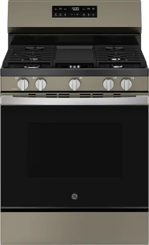 This gas range with nickel racks provides a durable design that handles heavy baking dishes with ease.