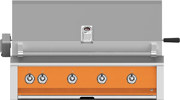 Built-in ceramic infrared rotisserie burner delivers searing heat from 12,000 to 18,000 BTUs and is located above the stainless steel rotisserie to lock in flavor and juices.