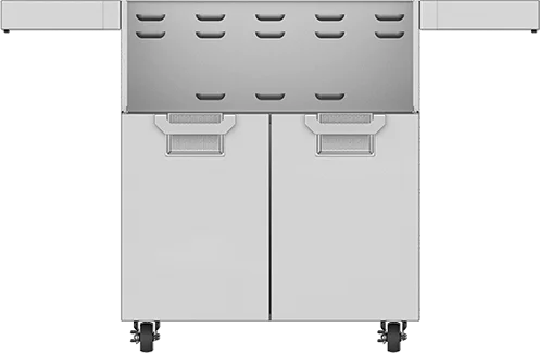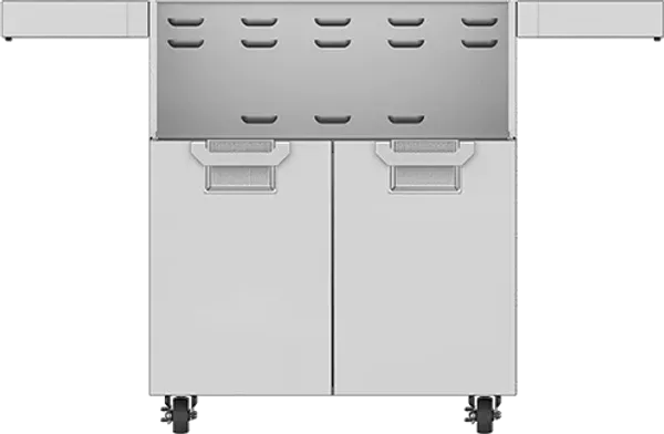 Front casters lock to ensure grill stays in position.