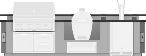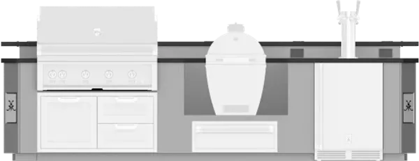 12-foot Outdoor Living Suite with Egg Shaped Smoker consists of multiple cutouts (appliances sold separately) in a suite to accommodate: 42" Hestan Built-in Grill, 42" Hestan Access Door or Drawer/Door Cabinet, 36" Egg Shaped Smoker/Grill, 30" Hestan Storage Drawer, 24" Hestan Beer Dispenser.