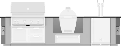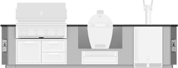 12-foot Outdoor Living Suite with Egg Shaped Smoker consists of multiple cutouts (appliances sold separately) in a suite to accommodate: 42" Hestan Built-in Grill, 42" Hestan Access Door or Drawer/Door Cabinet, 36" Egg Shaped Smoker/Grill, 30" Hestan Storage Drawer, 24" Hestan Beer Dispenser.