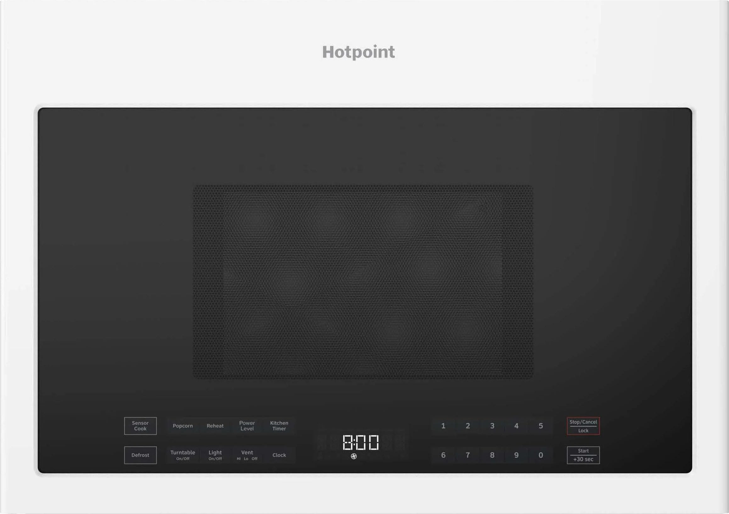 Add 30 Seconds Clock Control Lock Defrost: Weight/Time Kitchen Timer Light Off/On Popcorn Power Level Sensor Cook Sensor Reheat Start/Stop Turntable On/Off Vent Lo-Hi-Off