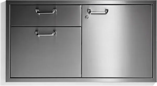 Abundant storage-a 42-inch-wide door and double drawer combination