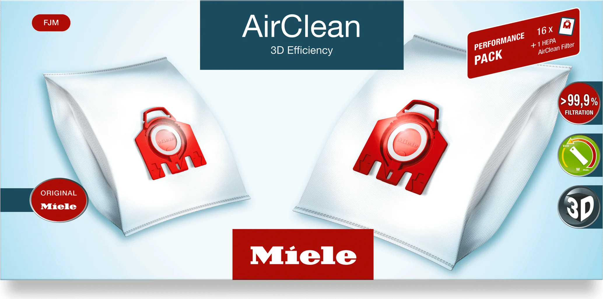 The Miele AirClean system filters more than 99.9% of all fine dust particles.